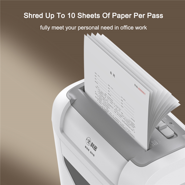 1. Shred capacity: Shreds 10 sheets per pass into 4*38mm cross-cut particles (Security Level P-4) for enhanced security on highly confidential documents to help keep your information safe.