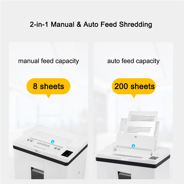 Manual feed: 8 sheets Auto feed capacity: 200 sheets |
